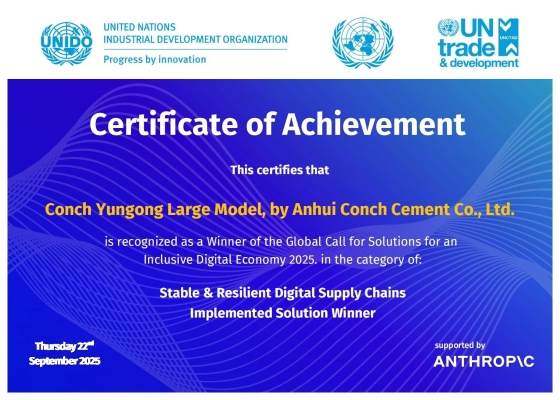 近日,海螺集團(tuán)下屬“安徽海螺水泥股份有限公司——海螺云工大模型”在聯(lián)合國工業(yè)發(fā)展組織等機構(gòu)于2025年7月發(fā)起...